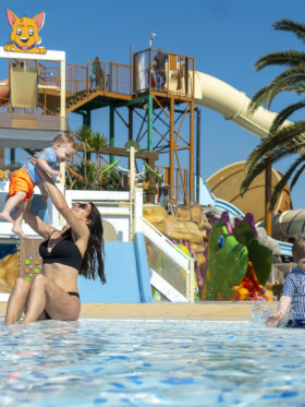 Für die Jüngsten gibt es einen ganz neuen Wassergarten mit einem flachen Becken, in dessen Mitte sich eine Wasserspielanlage mit Rutschen, einem Gießkasten, einem Wasserdrachen und vielen anderen Ausstattungen befindet, von denen eine mehr Spaß macht als die andere!