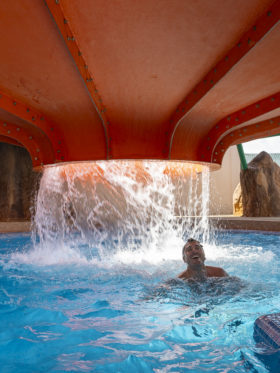 Sie können auch von einer sensationellen Rutsche profitieren, deren Kegel die Form einer Amphore hat – eine Anspielung auf den Namen unserer Anlage – und die mehrere Rutschvergnügen vereint, denn sie verfügt über visuelle Effekten, wenn Sie sich erst einmal im Inneren befinden. Bitte beachten Sie, dass diese Anlage nur für ein erfahrenes Publikum geeignet ist.